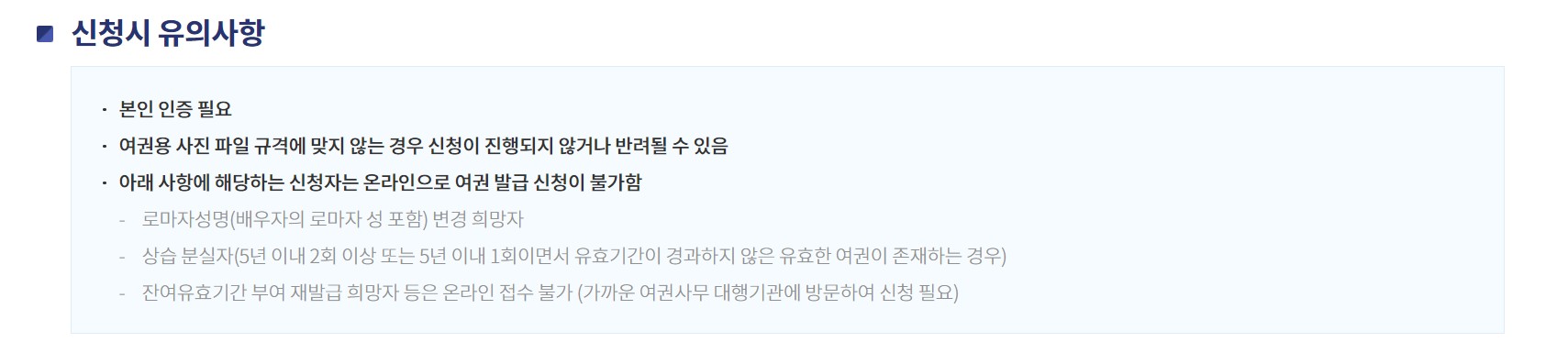 - 기존에는 여권을 발급받을 때 접수 및 수령을 위해 총 2회 창구를 방문해야 했으나, 온라인 신청의 경우 여권 수령을 위해 1회 본인이 직접 창구를 방문하게 됩니다(대리 수령은 불가합니다).