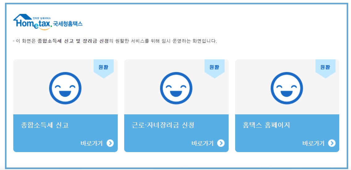 - 홈택스 : 홈택스 홈페이지(www.hometax.go.kr)에 접속하여 자격요건을 충족하는 경우 신청 가능합니다.