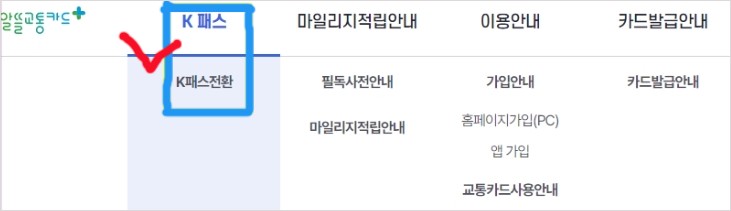 알뜰교통카드 홈페이지나 앱에서 회원가입 로그인 후 K-패스 회원전환